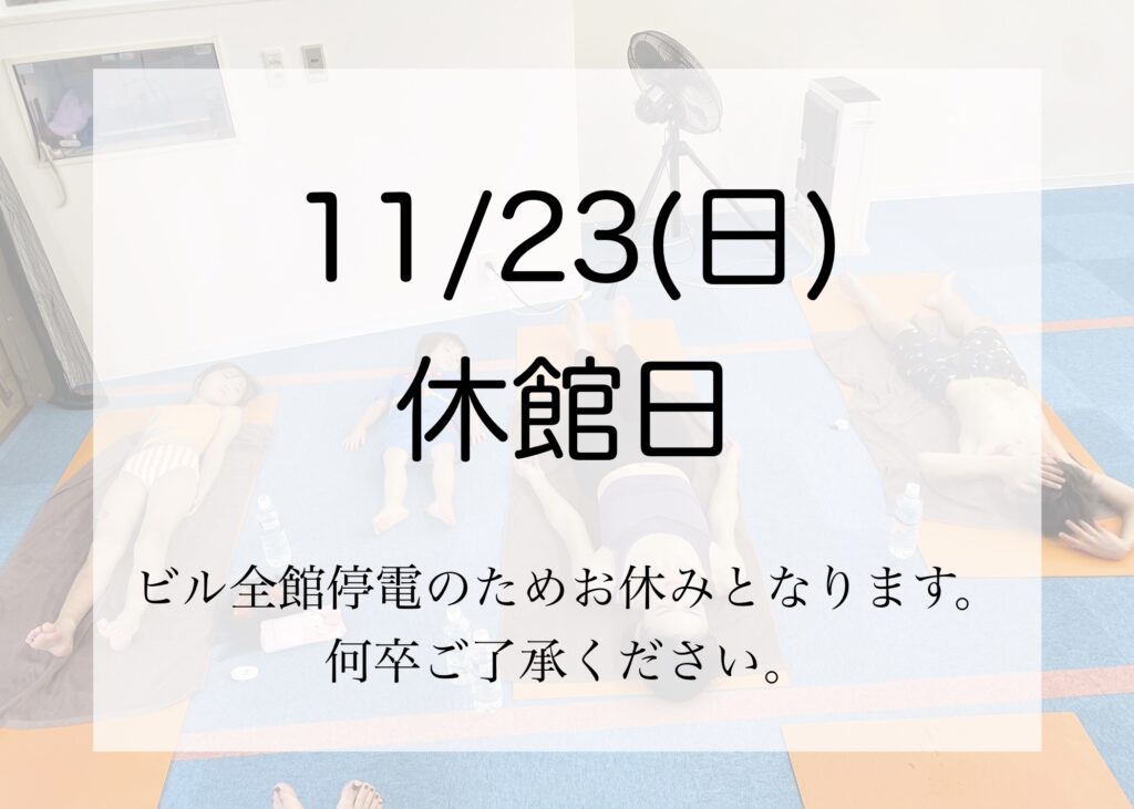 新着情報 2025年10月24日 by Erina 現在ビルの外壁工事中の為、騒音でご迷惑をお掛けしております。工事に伴い、11/23(日)は終日全館停電の予定です。休日に恐れ入りますが、ビクラムヨガ要町も休館となります。何卒ご理解のほどよろしくお願い申し上げます。 Share this:Click to share on Twitter (Opens in new window)Click to share on Facebook (Opens in new window)
